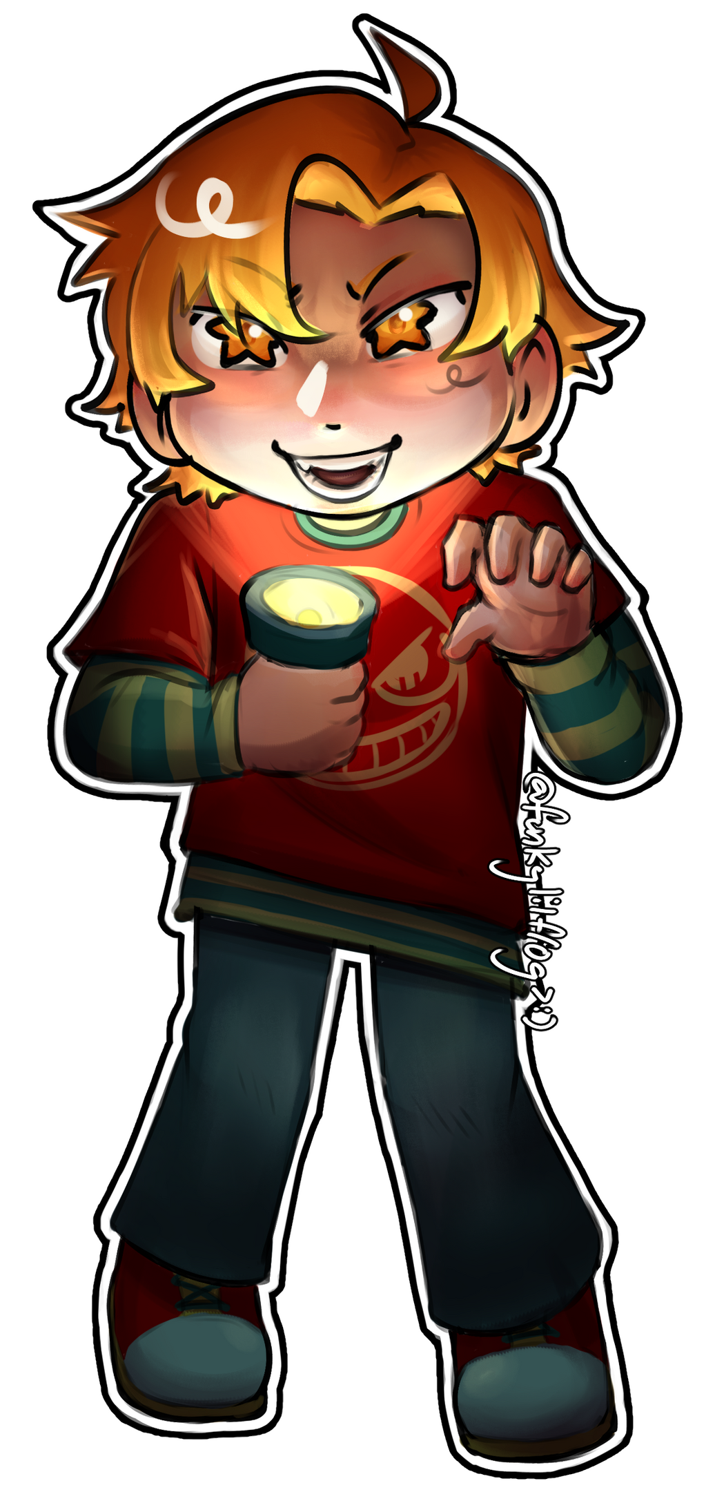 You may print or create a physical reproduction of the artwork (eg. keychains, pins, prints, etc.) as long as it is for personal use (ie. NOT for sale).